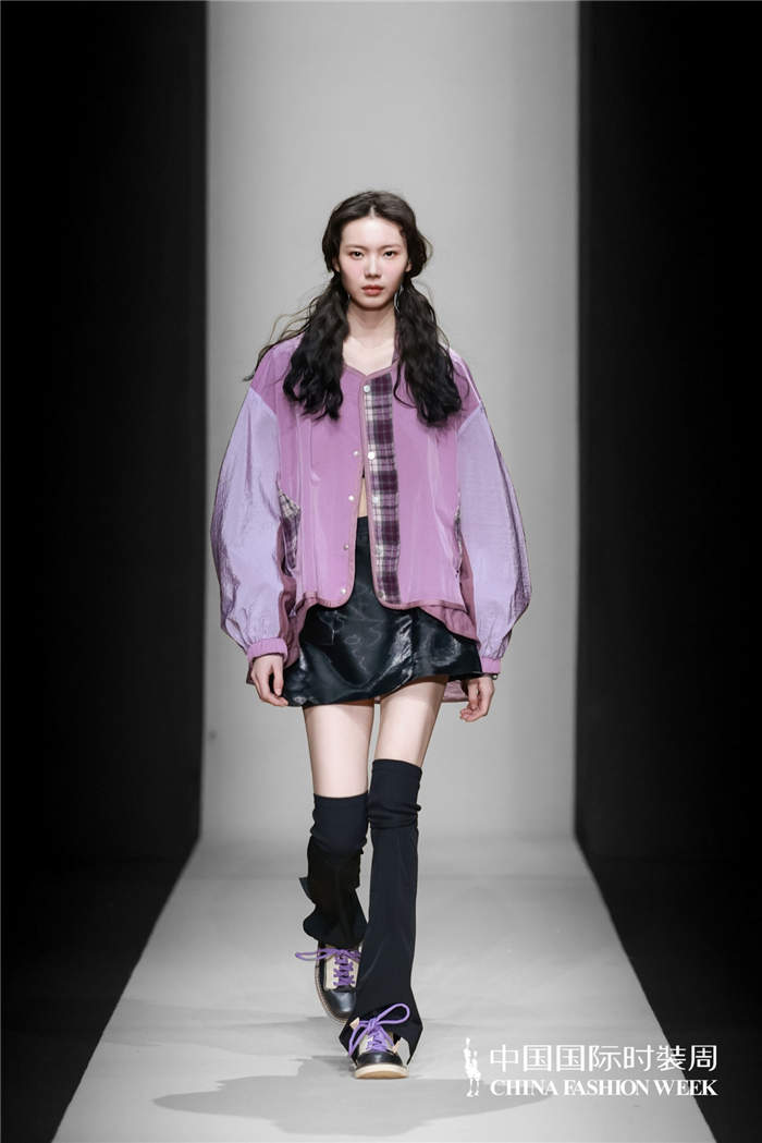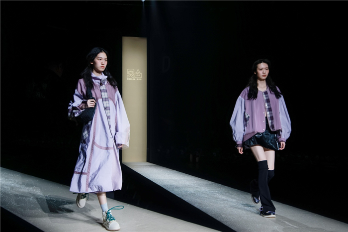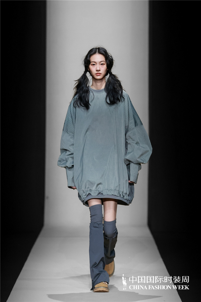 在材料选择上,以环境与自然可持续共存的低碳视角发掘人们生活中的实际需求,使用了科技型生态无氟防泼水特殊面料,独特水溶性纳米膜保持柔软、轻盈、防水功能性的同时,减轻对环境的消耗,使得每一件服饰都能适应不同的生活场景,实现轻量化、宽松的穿着体验,履行了设计师对人类和自然环境的使命,坚定了穿着者在成长中不断探索自我审视与自然的关系,通过日常的穿着选择,实践低碳生活。