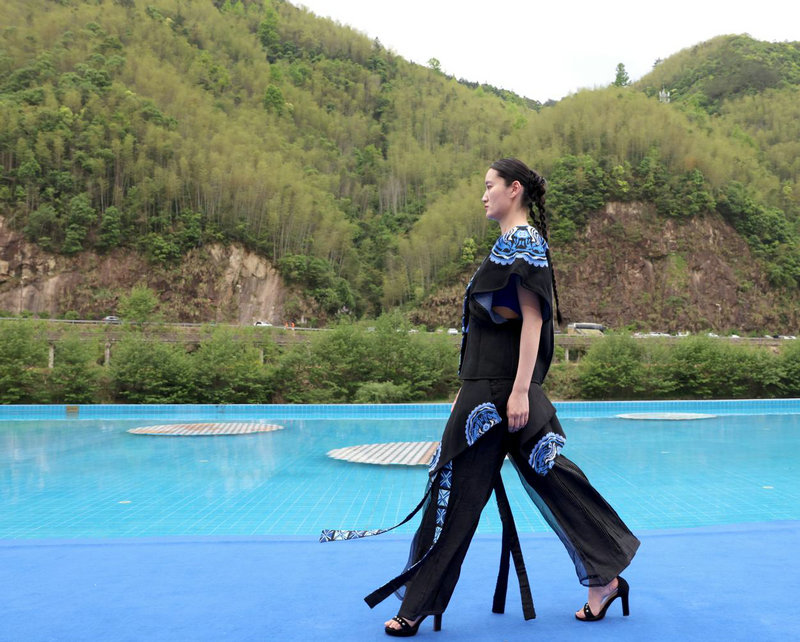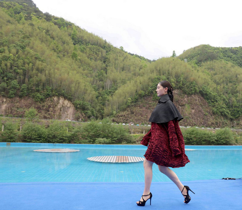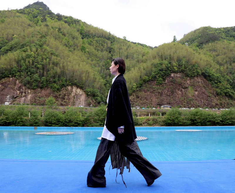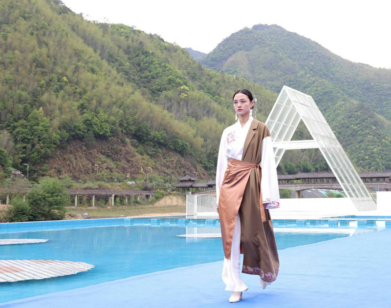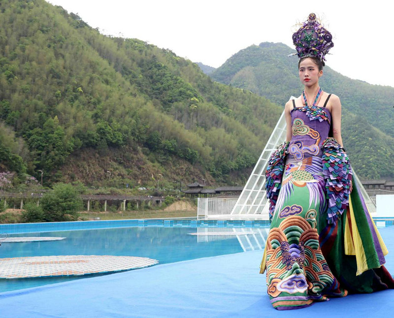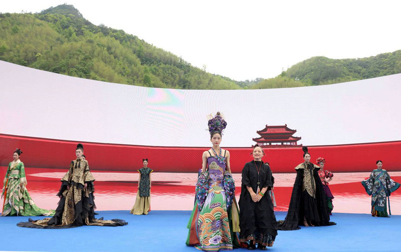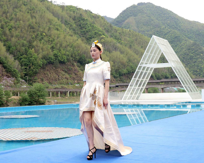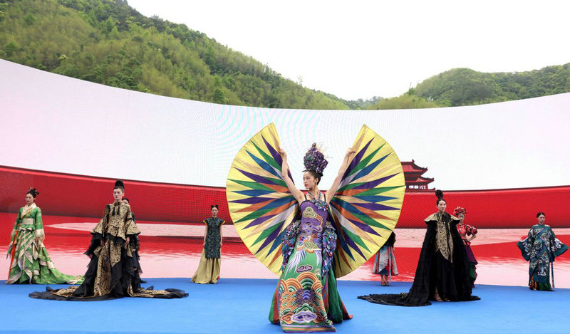 4月11日,模特在展演活动上展示著名服装设计师张义超设计的时装。
