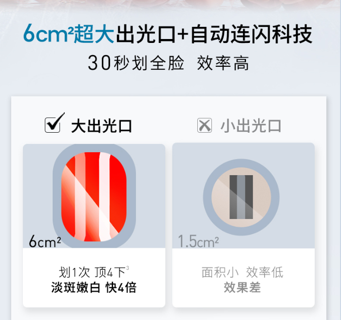 除此之外,Ulike超光炮美容仪一方面还拥有“蓝宝石冰护表皮科技”还将同步提供支持辅助,让用户在使用中“表皮不烫也不痛”,优化使用体验;另一方面还设计有6cm超大出光口与自动连闪科技,创造出30秒即可划全脸的高效作业,解决用户利用碎片化时间高效宅家护肤美容需求。