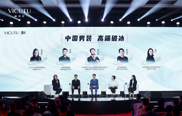 随后的圆桌论坛以《VICUTU如何引领中国男装高端破冰》为主题。由品牌研发总监陈烨对话中国纺织工业企业管理协会常务副会长杨金纯、北京服装学院教授郭瑞萍及阳狮集团传播营销策略总经理贺樯等,联合多位专家学者、业界精英从行业趋势、设计美学和营销传播视角出发,在资深媒体人郭漫思主持下,与现场听众一同深入剖析VICUTU“正装全场景”战略主张,及其诞生背后的行业背景和产业趋势。