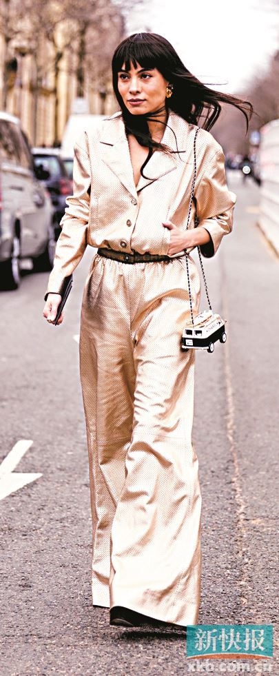 如果一定要挑战下装,可从不太贴身的亮片短裙入手,选择星星点点的亮片或金线点缀的裤装款式,也会比一整条亮片裤实用得多。