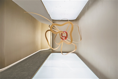 缀于广州梵克雅宝高级珠宝展览入口的缎面饰带挽成的花冠