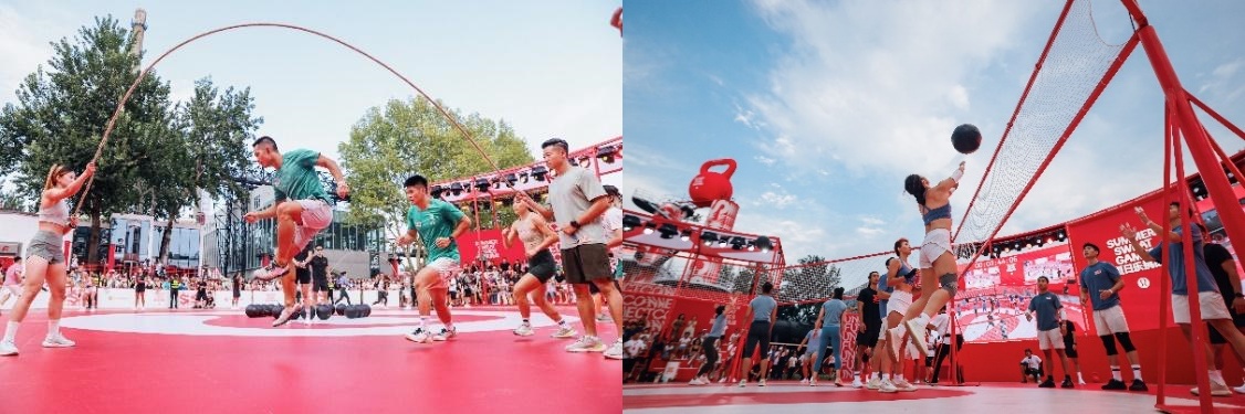 激烈比赛之余,lululemon在北京751园区火车头广场打造了免费对公众开放的 “热汗乐章大道”。该体验区以北京中轴线为灵感,设置了勇者之铃、飓风骑行、冰壶碰碰车、角力拔河等十余项趣味互动,无论个人体验还是组队比拼,都能充分感受运动趣味。在“热汗协奏场”,lululemon还盛邀多位门店大使领衔瑜伽、搏击、尊巴、普拉提等课程,带领客人们在热汗中互相联结。