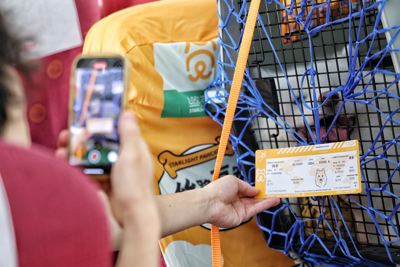 在航站楼内,宠物包机的旅客还享有专属的签到、值机及安检区域。在这里,宠物主人需要在值机柜台提供宠物的健康证明等材料,才能领取登机牌。