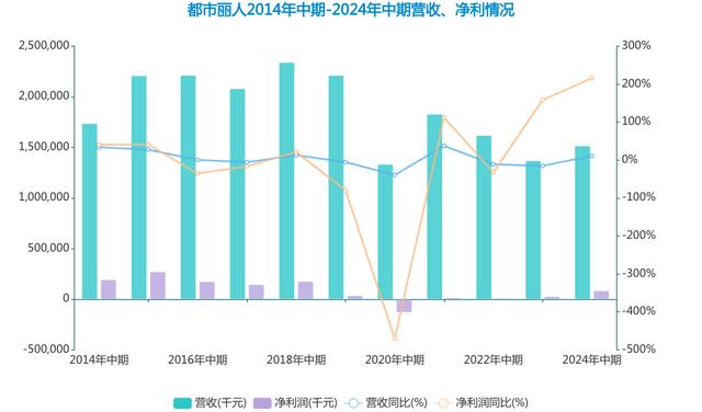 8月27日,都市丽人发布2024年中期业绩。在营收连降两年后,都市丽人今年上半年营收同比增长10.74%至15.14亿元;公司拥有人应占利润8239.8万元,同比增长215.35%。此外,都市丽人自2019年6月之后再次派息,每股股息港币1.1分,派息率约30%。