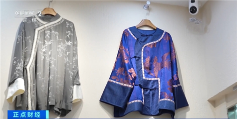 广东深圳荔秀服装批发市场某门店负责人 冯君竹:因为今年从春夏开始,国风比较流行,设计师也会受到鼓舞,受到大环境影响,使得销量翻倍了,其实在每一件衣服上都能找到一点属于中式的小元素。