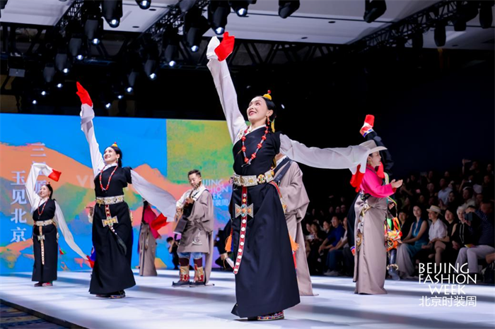 本季北京时装周的压轴大秀由京玉两地设计师联合打造,清华大学美术学院长聘教授、博士生导师、中国纺织非遗推广大使李薇以玉树文化为灵感设计开发的礼服系列,以服饰为载体,运用国际化、时尚化的设计语言,创新转化玉树文化,致敬玉树三江源。来自玉树的藏艺家、陀功阿妈、阿布嘎嘎、德仁凰品牌藏服系列同台呈现,组团来京发布展示。