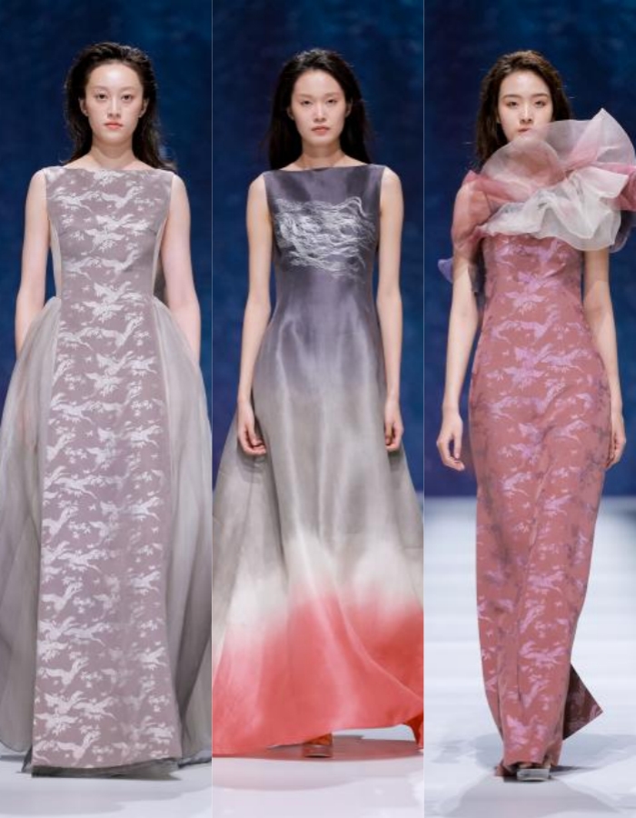 本次大秀以玉树文化为灵感,提取玉树三江源文化元素贯穿整个系列,同时还采用了玉树岩画典型图案、玉树牦牛绒创新材料等,结合了植物染、苏绣等非遗工艺,通过“黄河奔流”“长江滋养”“澜沧江博大”“夜与昼融合”四个篇章,表现三江源的神秘广袤,不仅是对三江源文化的吟咏,更是对生命力量的颂歌,展现了玉树三江源作为文化与生命的源泉,滋养万物,生生不息。