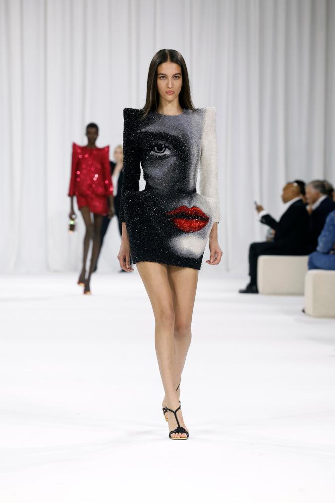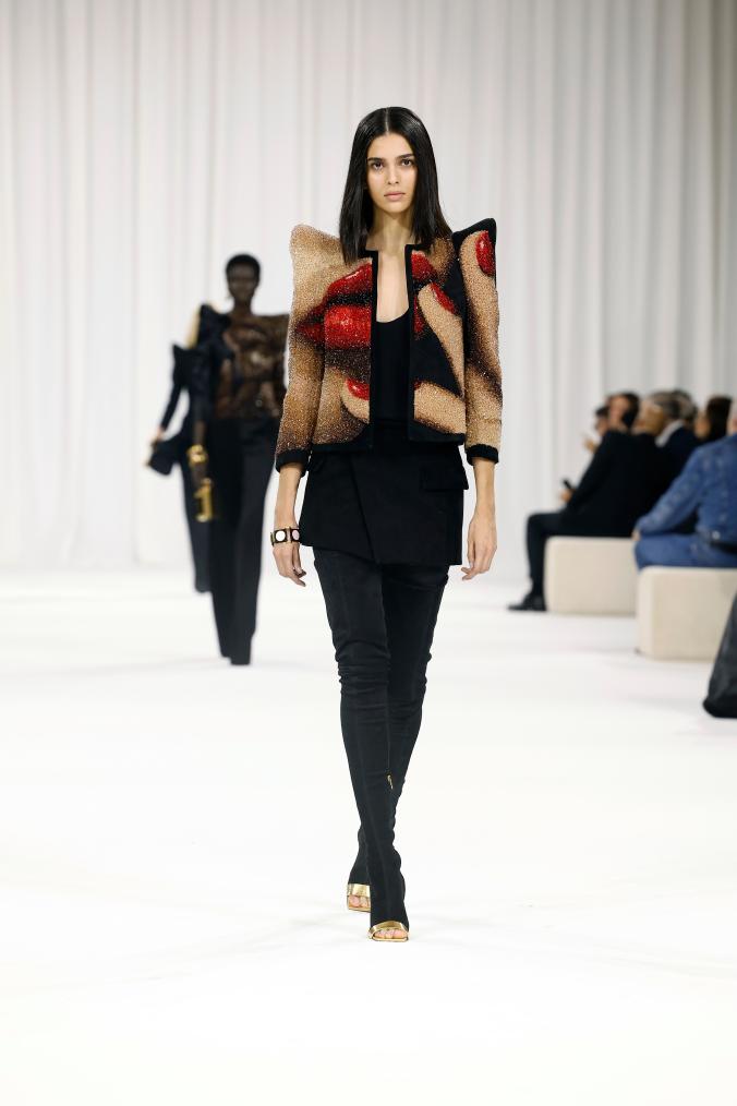 9月25日,模特在法国巴黎时装周上展示BALMAIN品牌2025春夏新品成衣。
