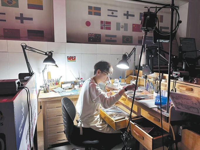 如今,张宇鹏留校任教,担任学校世界技能大赛珠宝加工项目中国集训基地教练,训练备战下一届世赛的梯队班选手。“我在课堂上是比较严厉的,因为手艺必须原原本本地传承下去,它是有标准的。我也会督促他们养成好的习惯,比如握锯的手法变形了,作品也会走样。”在张宇鹏看来,只有心沉下来,才能感觉到手上功夫。(记者 陈雪柠)