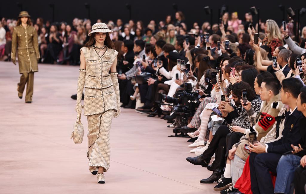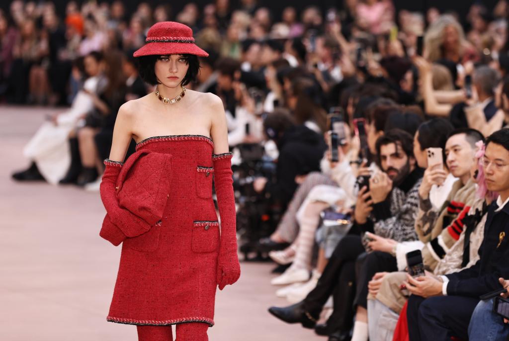 3月11日,模特在法国巴黎时装周上展示法国品牌香奈儿2025/2026秋冬高级成衣。