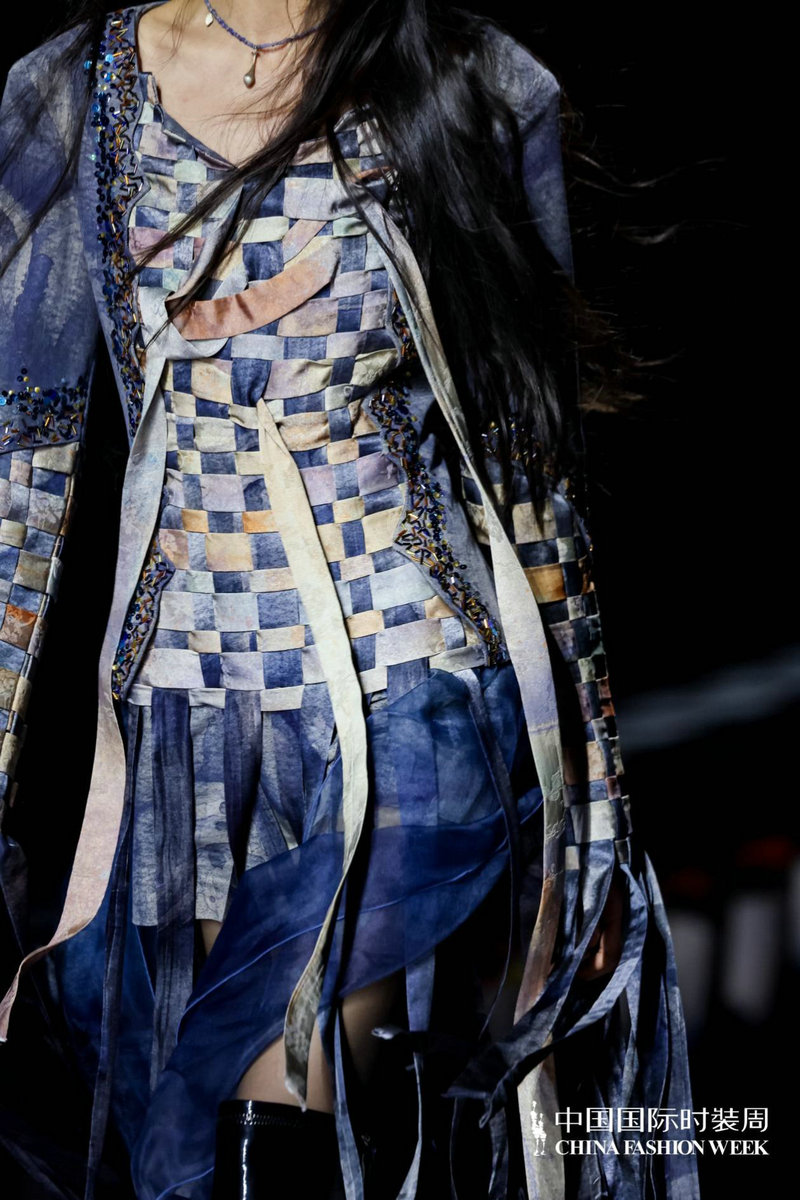 本季ZIFEI WANG秀场以北魏时代的文化迁徙为灵感来源,设计师恍若置身北魏平城,亲历多维度游牧所引发的边界突破。这份炽热与破壁而生的决绝,不禁使人联想到以技术-身体革命突破人类边界的未来主义核心精神。在灵感创作的探寻中,设计师化身为永驻逃逸线的霓裳游牧者,解域北魏这一文明淬炼的熔炉时代,并将其内在启示赋予未来意义,重构本季ZIFEI WANG的叙事语法,用“自由”的设计,掠走风格的边界,缝缀出别样的新生。