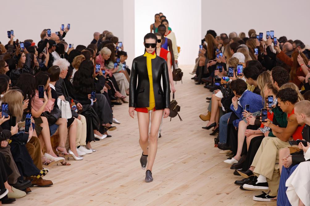 10月3日,模特在法国巴黎时装周上展示罗意威品牌的2026春夏新品成衣。