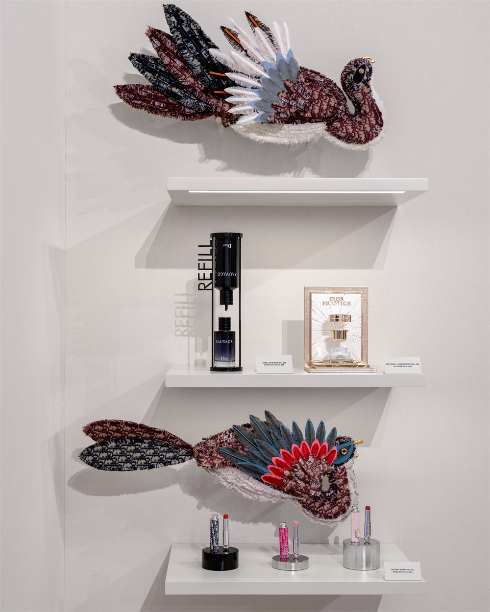 与此同时,展区亦呈现了一系列迪奥美妆的可持续创新成果,包括迪奥魅惑唇膏系列、迪奥旷野系列、迪奥花秘系列的可替换装设计。通过可重复使用的瓶身与补充装系统,减少一次性包装废弃物,以创新方式延长产品生命周期,诠释迪奥可持续之美的当代愿景。