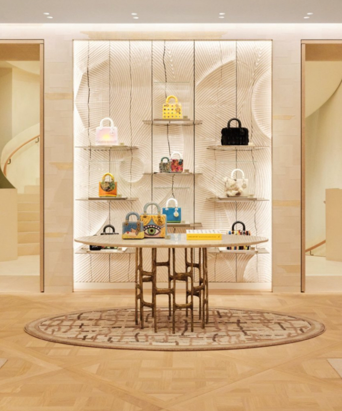 为致敬克里斯汀·迪奥与其同时代艺术家的紧密联结,全新迪奥之家被打造成一个艺术空间,展示众多艺术臻品。其中包括中国艺术家王茜瑶与徐震的画作,法国艺术家Claude Lalanne、法国设计师Franck Evennou,以及意大利设计师Gio Ponti的家具设计。值得一提的是,中国艺术家洪浩特别创作《往复之二十四》《万相之七》《万相之三十七》三幅画作,以庆北京迪奥之家的开幕。此外,店内墙面皆由手工精心打造,延续创意与匠心的和谐共鸣。