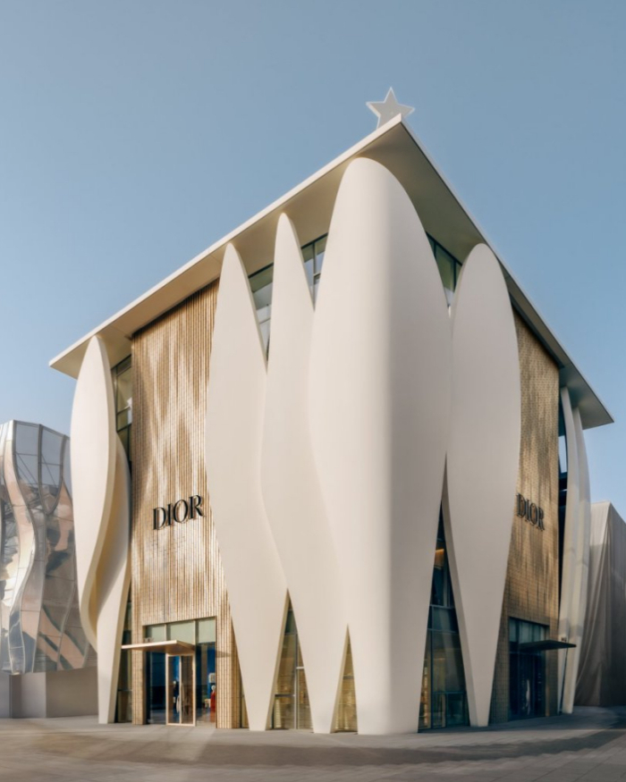 作为于2015年在首尔,以及2024年在日内瓦先后落成的迪奥之家续章,北京迪奥之家亦由国际著名建筑大师——克里斯蒂安·德·包赞巴克(Christian de Portzamparc)倾力设计,他贯以极具视觉冲击力的风格享誉全球。本次,全新迪奥之家被打造成一座如雕塑般的建筑杰作:外立面采用流畅线条勾勒出如花瓣般的尖拱造型,宛如克里斯汀·迪奥(Christian Dior)裁剪高级订制礼服时,流动的线条定格在空中;墙体则采用手工玻璃砖打造,以金色呼应中国传统文化中的尊贵象征。这座建筑不仅是精湛技艺的体现,更是迪奥优雅美学与现代设计语言的完美融合。