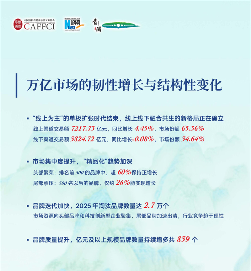 颜江瑛指出,2025年中国化妆品产业处于关键的转型节点。在市场规模保持全球领先的同时,政策支持、科技创新、国货崛起、渠道融合、市场细分构成了产业发展的主旋律。市场增长引擎已由过去的“总量扩张”转变为“结构优化”,从“跑马圈地”的广度拓展,转向了“精耕细作”的深度竞合,行业正迈向更成熟、更高质量的发展新阶段。