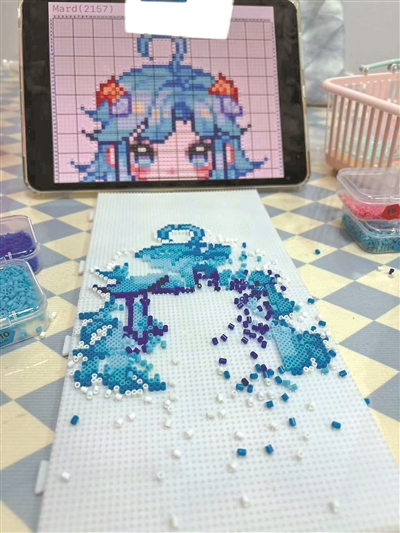 在带来创作乐趣的同时,拼豆还具有独特的心理调节作用。心理学专家严林峰分析,拼豆属于典型的专注型手工活动,能够帮助人们将注意力高度集中于当下,暂时脱离外界的纷扰与焦虑。指尖与豆粒接触的细微触感、色彩搭配带来的视觉愉悦,以及从构思到成品的完整创作过程,都有助于情绪梳理与内心修复。通过将零散材料有序排列组合,人们能在创作中重建内心的秩序感与掌控感,缓解现实中的无力与失控感;而完成作品带来的成就感,则有助于提升自我价值感,进一步改善情绪状态。(文中人物均为化名)(记者 王婧懿 实习生 丁俐文)