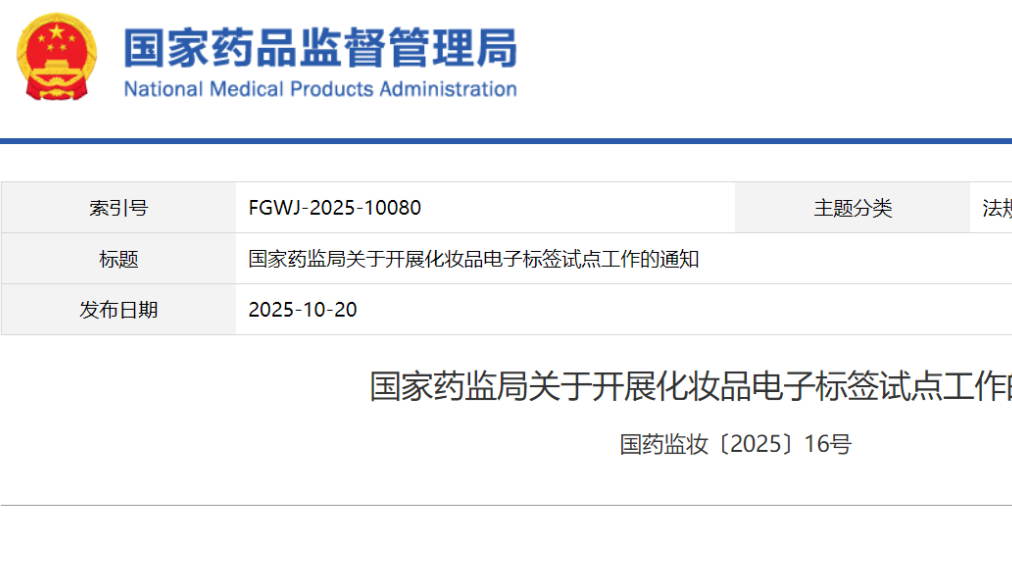 国家药监局关于开展化妆品电子标签试点工作的通知 国药监妆〔2025〕16号