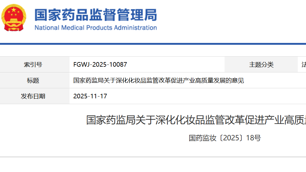 国家药监局关于深化化妆品监管改革促进产业高质量发展的意见 国药监妆〔2025〕18号