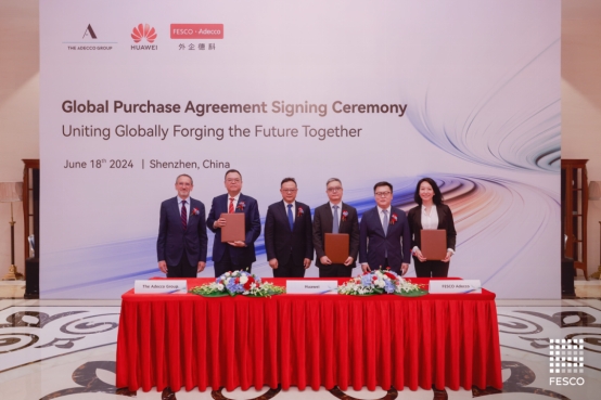 6月18日,华为于深圳坂田华为基地举办主题为“Celebrating 20 Years, Uniting Globally: Forging the Future Together”的全球合作协议签约仪式。德科集团(The Adecco Group)CEO Denis Machuel,德科集团全球区域总裁 Ian Lee,北京国际人力资本集团(FESCO Group)董事、总经理郝杰,德科集团全球高级副总裁、德科中国CEO倪瀛,外企德科上海公司董事、总经理宋菲菲,北京国际人力资本集团董事会秘书孙康等应邀出席签约仪式。