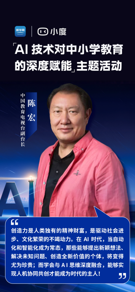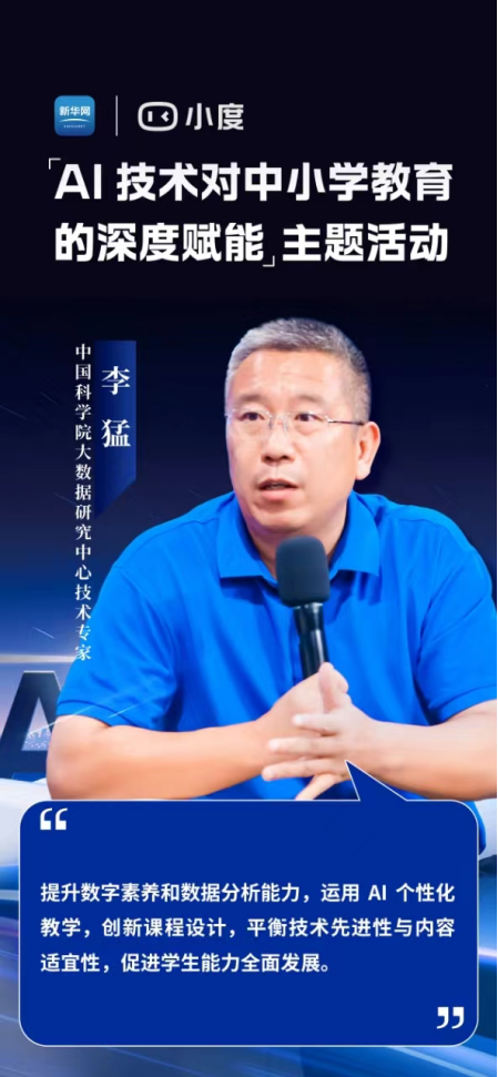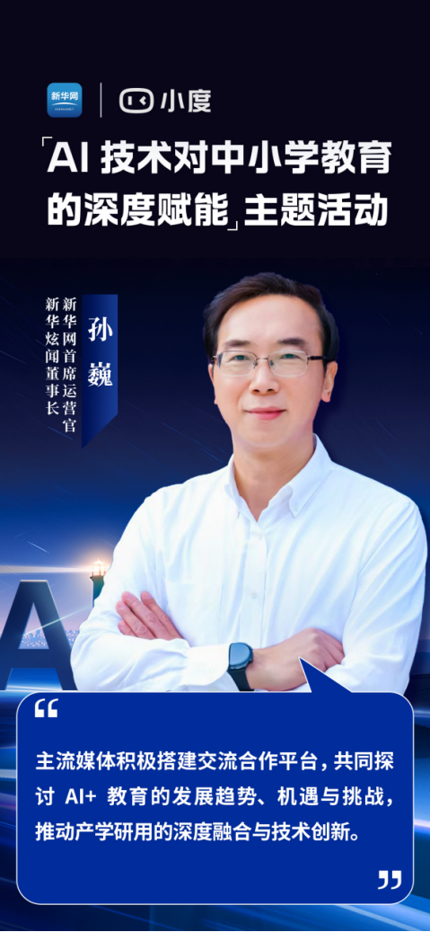 随着人工智能(AI)技术的快速发展,其在教育领域的应用日益广泛。AI技术不仅改变了传统的教学方式,还为个性化教育提供了新的可能。8月21日,新华网客户端联合小度科技,举办以“AI技术对中小学教育的深度赋能主题活动”,邀请国内教育领域的顶尖机构、院校代表、知名学者等,探讨AI技术在中小学教育中的应用与前景,旨在推动教育行业的创新与进步,精彩观点层出不穷。