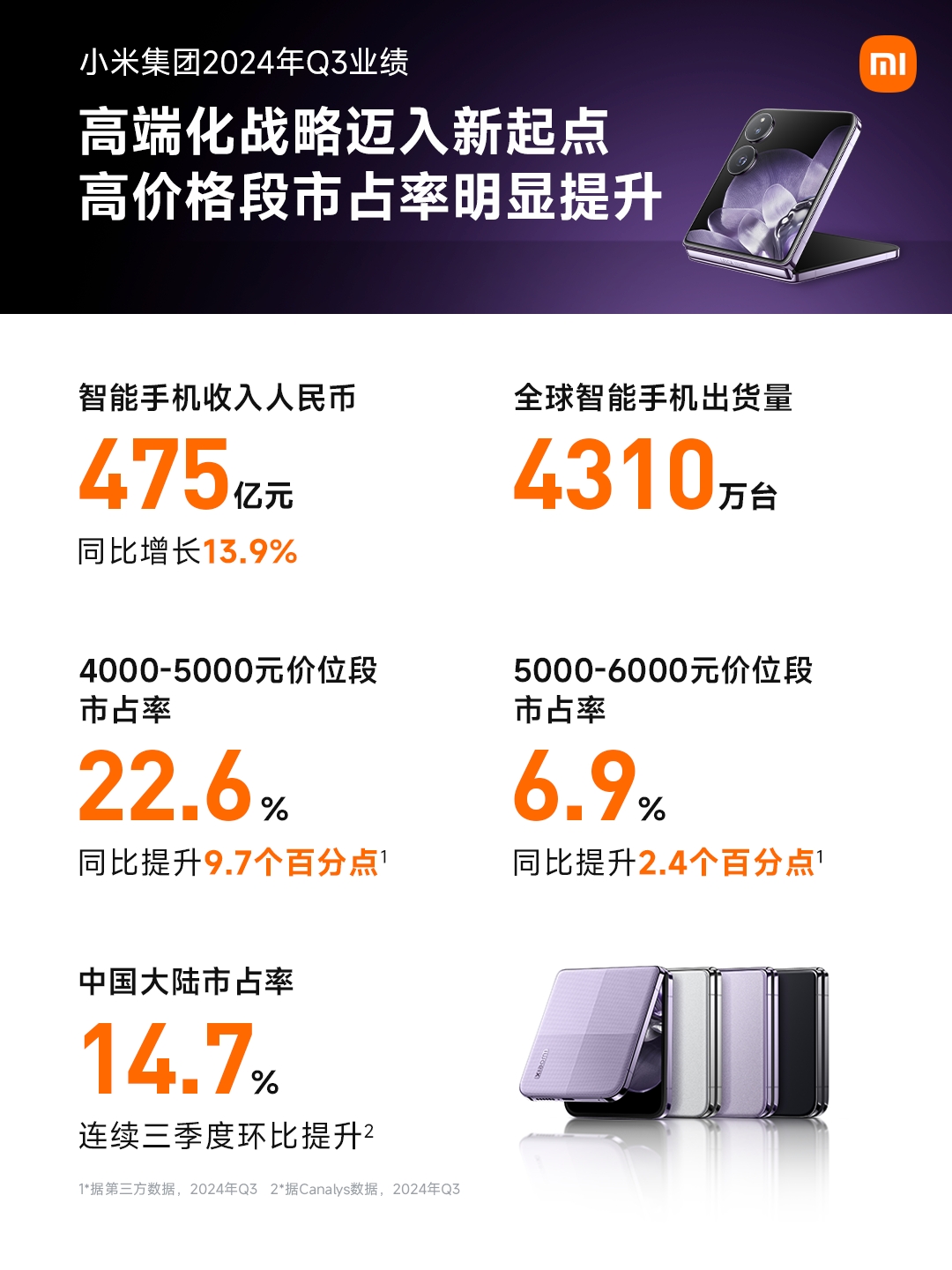 小米2024年第三季度朝高端化全面进发,品牌连续破圈,带动业务迸发强劲增长活力。