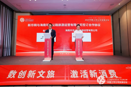 论坛现场,系列项目签约、发布。图为新华网与海南环岛公路旅游运营有限公司签约。 新华网发