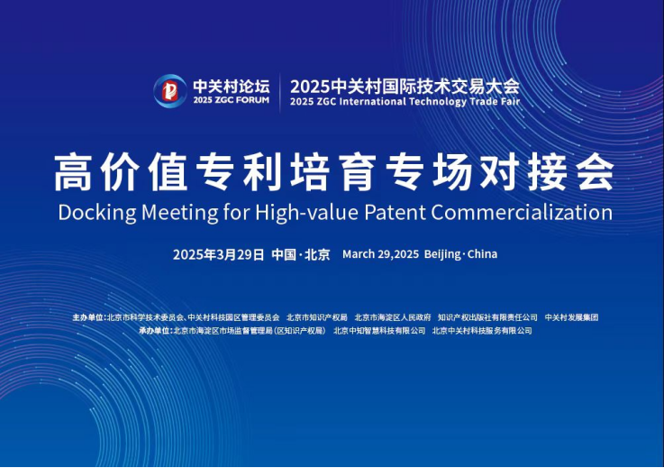 3月29日,由北京市科学技术委员会、中关村科技园区管理委员会、北京市知识产权局、北京市海淀区人民政府、知识产权出版社有限责任公司和中关村发展集团主办的高价值专利培育项目专场对接会在2025中关村论坛·中关村国际技术交易大会上成功举办。
