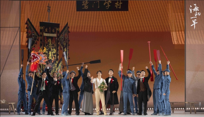 2024年,由中华全国归国华侨联合会文化交流部指导,中国东方演艺集团有限公司、福建省归国华侨联合会、厦门福南堂文化产业有限公司、凤凰都市文化传播(北京)有限公司共同出品,厦门市集美区文学艺术界联合会联合出品的舞剧《海的一半》应运而生。剧目以陈嘉庚先生与南洋华侨共同倾资兴学、推动祖国教育事业发展的历史为蓝本,精心构建了一个跨越南洋与闽南两地的宏大叙事框架,通过高度的艺术概括与创造性的表现手法,生动诠释了华侨爱人、爱乡、爱国的深切情怀。