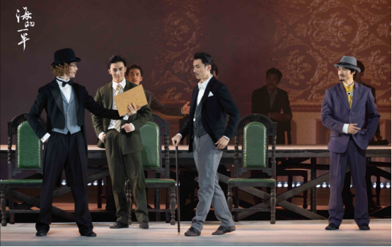 剧目编排运用了大量刚劲有力的舞蹈语汇,结合现代舞的流畅多变,呈现出华侨群体的刚毅果敢;同时以现代感的舞美设计丰富了“海”的意象,带有闽南韵味和南洋风情的民居、渔船、海港,将观众带入海滨侨乡的氛围;以16块巨大吊板组成灵活变化的舞台背景,时而映照成一片温柔霞光,时而化作简约的渔船,时而旋转拼接成巨型会议桌,成为贯穿全剧“漂泊感”的具象载体。(林楷煜 龚书韶)