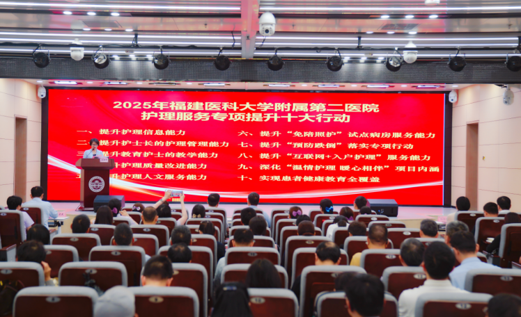 “为紧扣国家各项政策导向与患者实际需求,福医大二院正式启动‘护理服务专项提升十大行动’,以‘赋能护士、呵护患者’为双引擎,破解护理服务提质增效的瓶颈问题。”福医大二院党委委员、副院长曾红华介绍,在“赋能护士”维度,聚焦护理队伍专业能力建设,以信息化赋能、管理力提升、教学体系优化为抓手,采用分层递进的培养机制,打造更专业的护理团队;通过护理质量改进专项,推动循证实践与标准化建设,让护理更科学。在“呵护患者”维度,聚焦服务升级,通过“免陪护病房”标准化建设、“互联网+入户护理”、预防跌倒专项攻坚等举措,将人文关怀融入服务全流程,推行患者健康教育全覆盖,建立标准化宣教体系,实现专业照护全周期。通过关心关爱护士与照护患者的双向发力,共同提升护士职业价值与患者健康获得感。(林楷煜 王妍翡 曾婧琦)