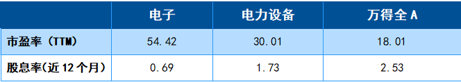 表3:电子、电力设备行业指数与万得全A的对比
