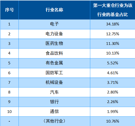 表2:成长风格的主动权益基金第一大重仓行业的分布情况