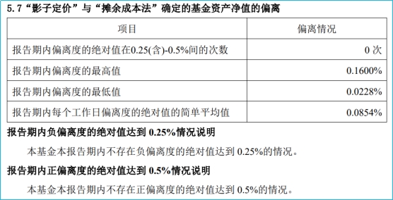 某货币基金季报中披露的偏离度信息