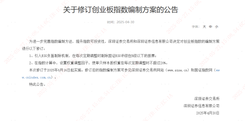 2025年4月30日,深圳证券交易所和深圳证券信息有限公司发布了“修订创业板指数编制方案”的公告,本次修订于2025年6月16日起实施。作为反映创业板表现的核心指数,此次修订有助于进一步提升指数的表征作用和可投资性。让我们一起来看下本次编制方案修订在哪些地方做了优化?
