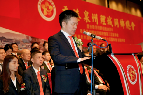 泉州市鲤城区委常委、统战部部长陈楚亮肯定同乡会凝聚爱国爱港爱乡情怀,诠释"鲤城力量",邀乡贤回乡投资,承诺提供最优服务,期许化身"文化使者",向世界展示世遗古城魅力。(肖松清)