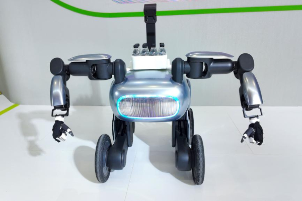 展会现场热闹非凡,广汽第三代具身智能人形机器人GoMate的登场,更是将现场气氛推向高潮。其科技感十足的外形设计、自然流畅的语音对话,赢得观众阵阵惊叹。此外,GoMate还能主动伸手握手、挥手致意,并精准听从指令取拿物品,智能交互能力十分出色。这款拥有38个自由度的机器人,创新采用可变轮足构型,四轮足状态稳健越障,两轮足站姿灵活高效,较同类产品能耗降低80%以上,续航可达6小时。