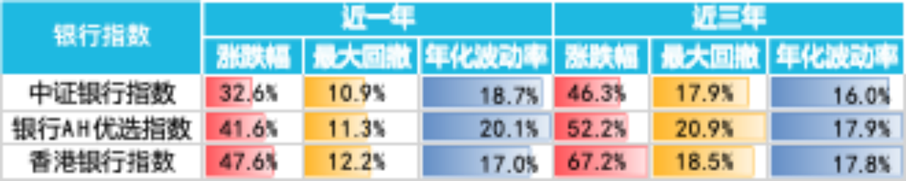 表:三只银行指数近一年与近三年的风险收益特征