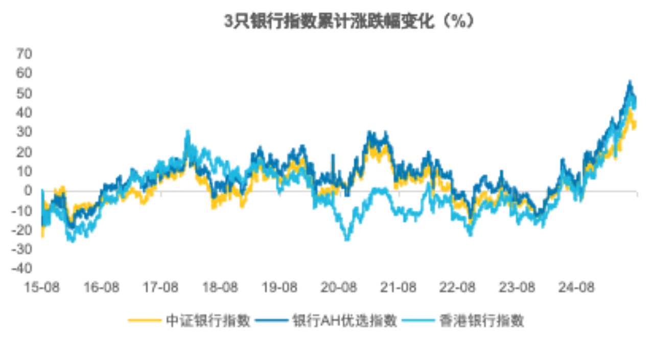 跟踪银行板块的指数中,较为常见的有3只,分别为中证银行指数、中证香港银行投资指数(以下简称香港银行指数)、中证AH价格优选指数(以下简称银行AH优选指数)。