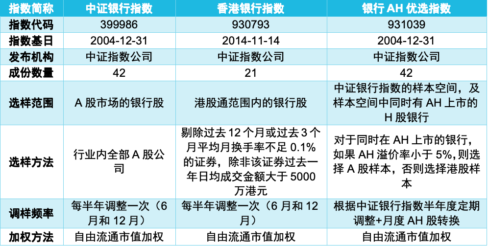 表:三只银行指数编制方法