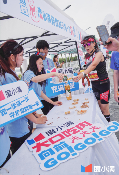 在12.5公里与27.5公里的度小满补给点,跑友们不仅可以享用水果补给,还能品尝到哈尔滨特色肘子、烤肉,为征途增添一份“冰城味道”。