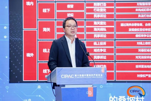 安踏体育用品集团有限公司副总裁樊俊伟分享了安踏集团的“点面结合、综合应对”的维权体系。作为一家全球性公司,安踏集团采取单聚焦、多品牌、全球化的发展策略,针对不同的侵权类型与行为,采取不同维权应对方案。樊俊伟介绍,安踏集团采取“抓典型打头部+教育震慑”的打防一体维权策略,并针对不同侵权行为采取全类型全覆盖、点面结合、重拳打击的措施。樊俊伟还结合安踏集团的维权实践,分享了行业维权难点,如线上侵权多发且变化快、平台主控少、投诉难且审核慢,线下刑事异地管辖难、电子证据获取难且认定难,诉讼立案周期长、判赔金额低、执行难等,期待政府、平台、权利人、消费者等多方形成合力,共同营造更好的知识产权保护环境。
