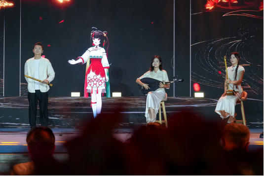 22日晚,在泉州府文庙,泉州本土南音乐团“点水南乐”与B站虚拟艺人跨界演绎南音名曲《春光明媚》,一场融合虚拟现实、数字交互与非遗文化的沉浸式演出,惊艳了现场观众。
