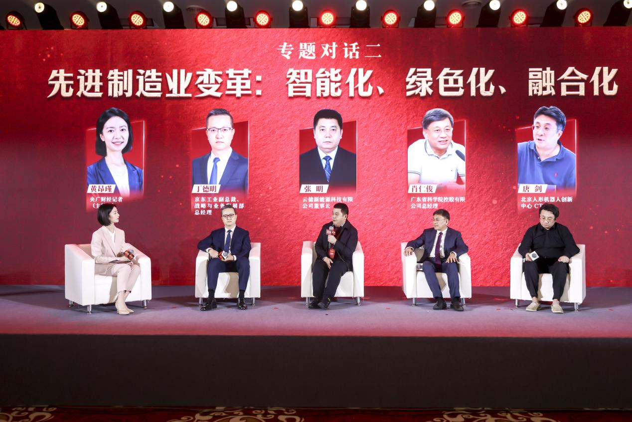 在“先进制造业变革:智能化、绿色化、融合化”专题对话中,云储新能源科技有限公司董事长张明,京东工业副总裁、战略与业务发展部总经理丁德明,北京人形机器人创新中心CTO唐剑,广东省科学院控股有限公司总经理肖仁俊探讨了数字储能创新、供应链数智化、人形机器人落地、科技成果转化等核心议题,明确先进制造业“三化”转型的实践路径与发展机遇。
