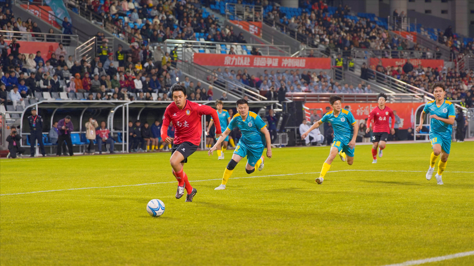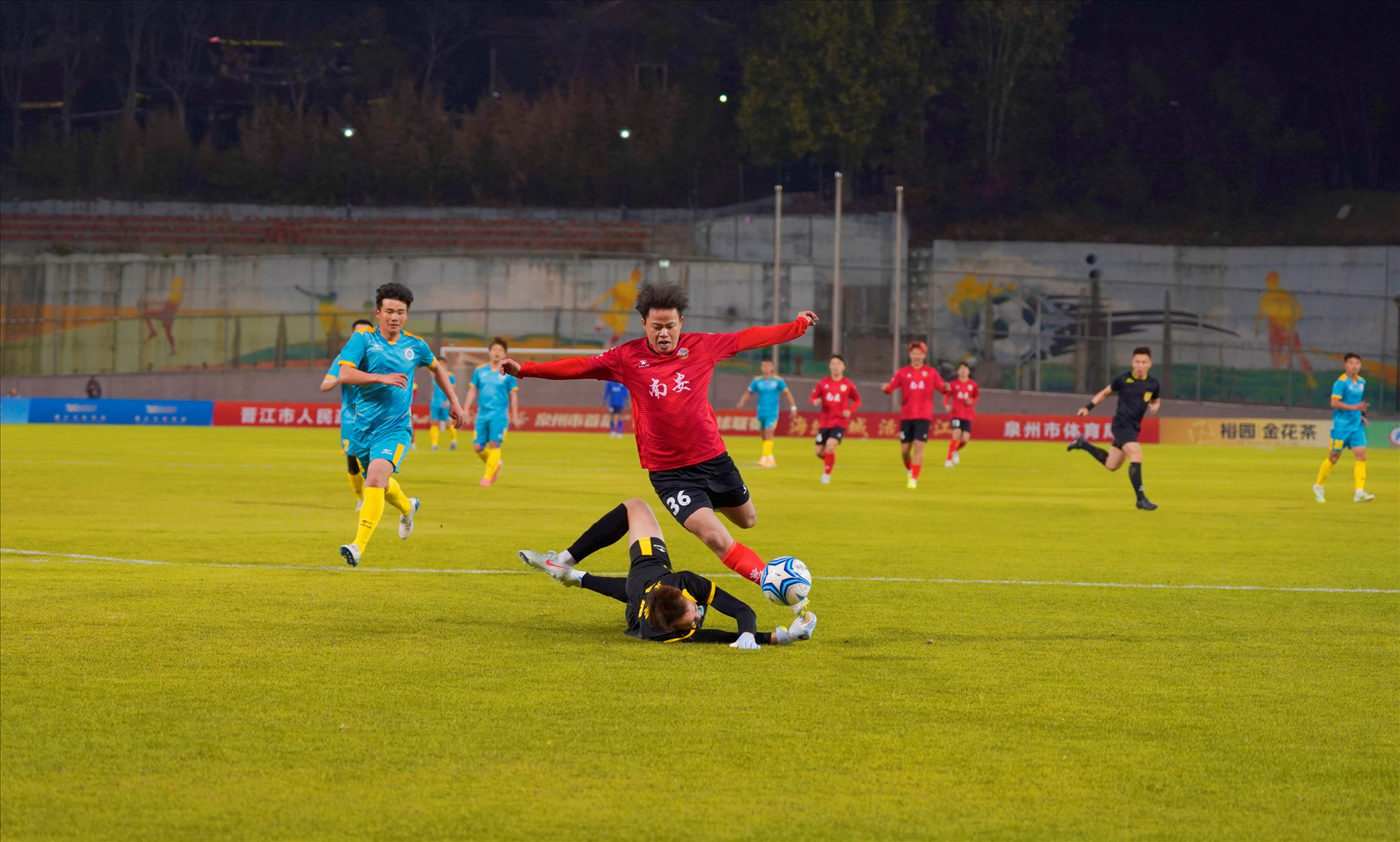 南安队球员带球进攻