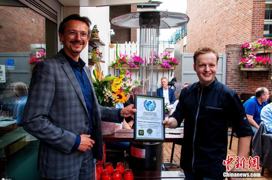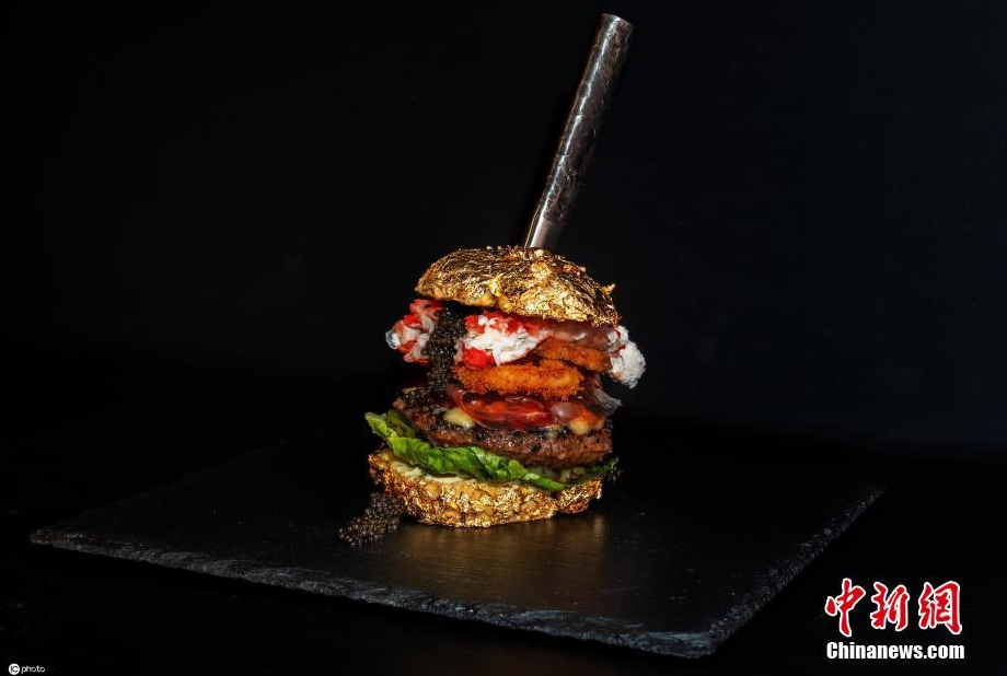 当地时间2021年7月19日,荷兰一家餐厅推出日前推出世界上最贵的汉堡,名为“黄金男孩”,价值4200英镑(约3.8万人民币)。汉堡使用的配料让人瞠目结舌,有神户牛肉、白鲟鱼子酱、帝王蟹、西班牙伊比利亚火腿和白松露等,汉堡顶部还覆盖着金箔装饰。据悉,此前,汉堡的最贵价格纪录是美国俄勒冈州一家餐厅的汉堡,该汉堡售价5000美元(约3.2万人民币)。 图片来源:ICphoto