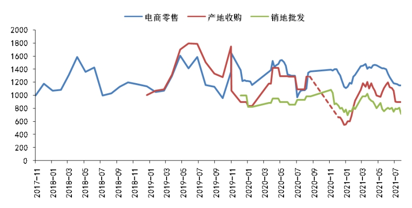 电商零售方面,本期新华·宜昌秭归脐橙电商价格指数报1153.10点,环比下跌1.34%,同比上涨7.87%。各监测点秭归夏橙电商销售均价为8.49元/公斤,秭归脐橙电商渠道销量环比下跌26.77%。