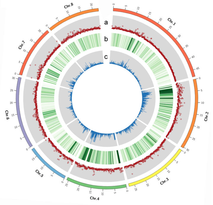 ‘早上海水蜜’与参考基因组的遗传变异分布(中国农业科学院郑州果树研究所供图)