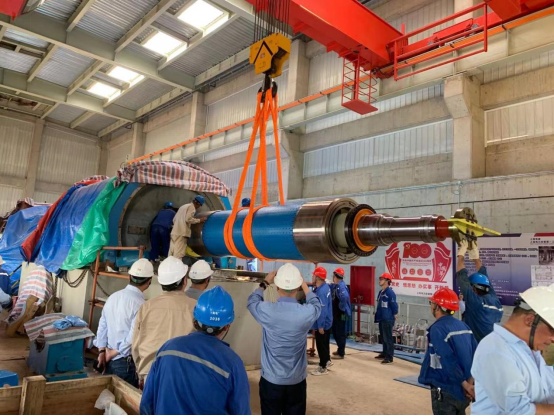 在项目现场,工作人员正在讨论机组调试方案,他们面前的“空气动力透平膨胀机”是盐穴压缩空气储能国家示范项目的核心装备之一,将起到“动力源”的作用。据悉,作为首台专门针对非补燃压缩空气储能电站运行特性研发的空气透平发电机组,该设备的研发制造花费了一年半时间。